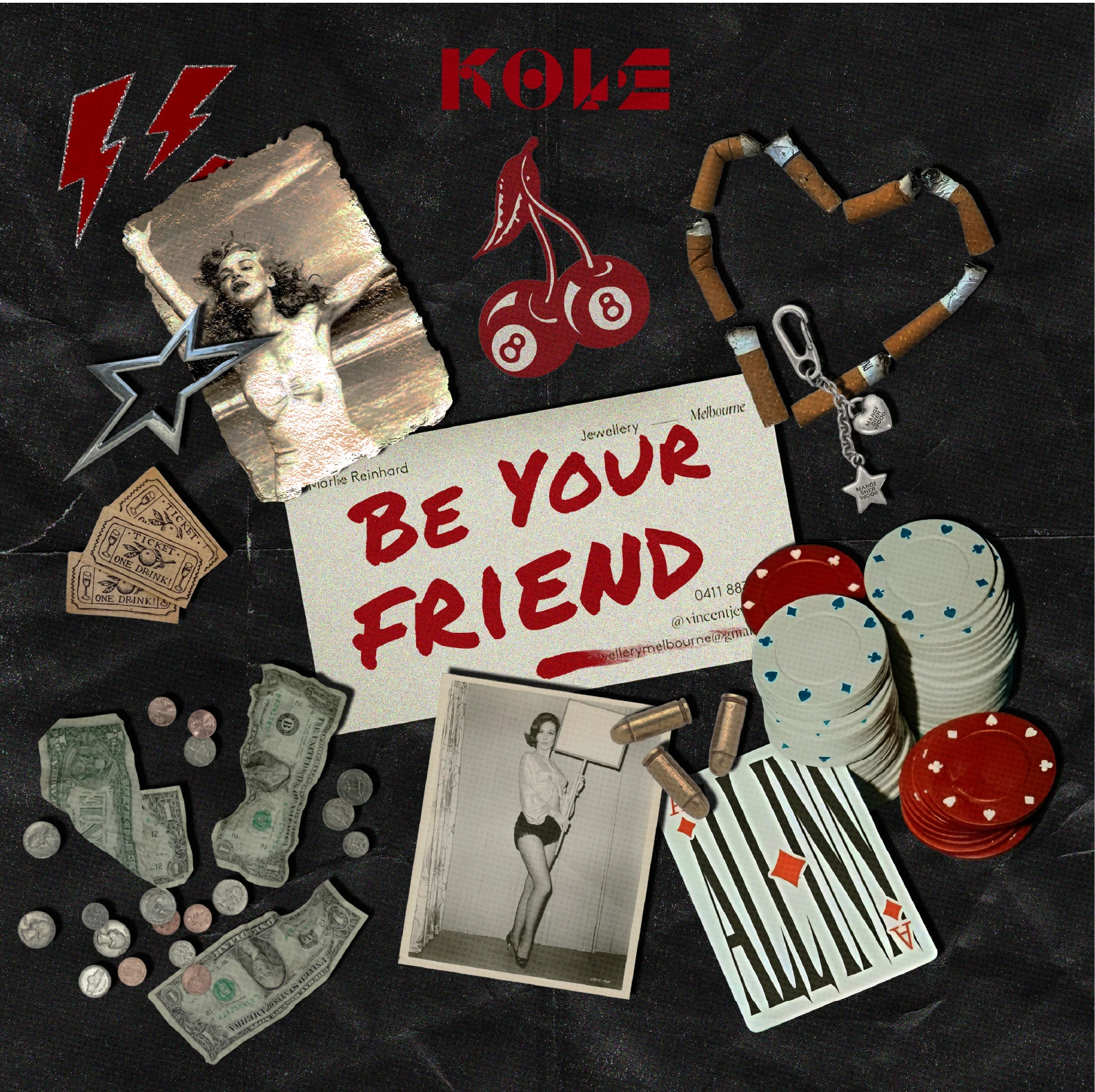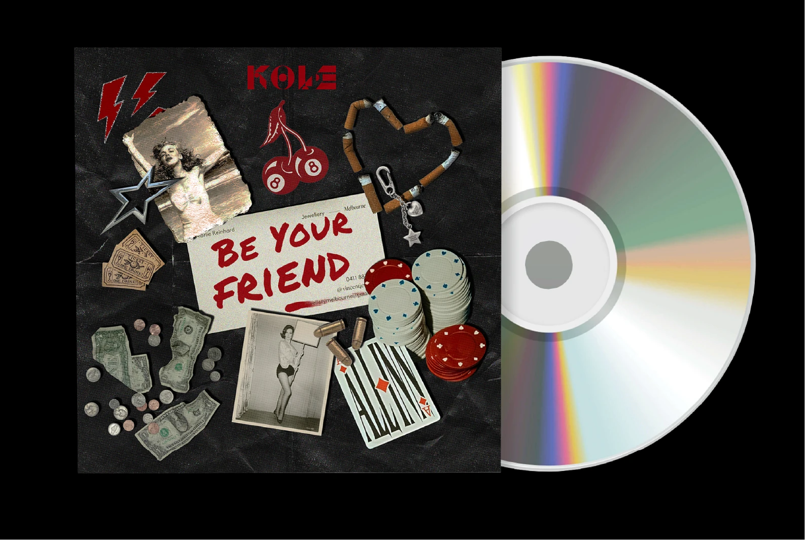 For Kole’s single “Be Your Friend,” I created artwork rooted in the classic Las Vegas era, drawing on themes of gambling, gangsters, and vintage casino culture. The design aimed to evoke a moody, cinematic atmosphere that aligned with the track’s tone, using textures, typography, and imagery reminiscent of mid-century Vegas. The result was a bold, character-driven visual that gave the single a strong and memorable identity.